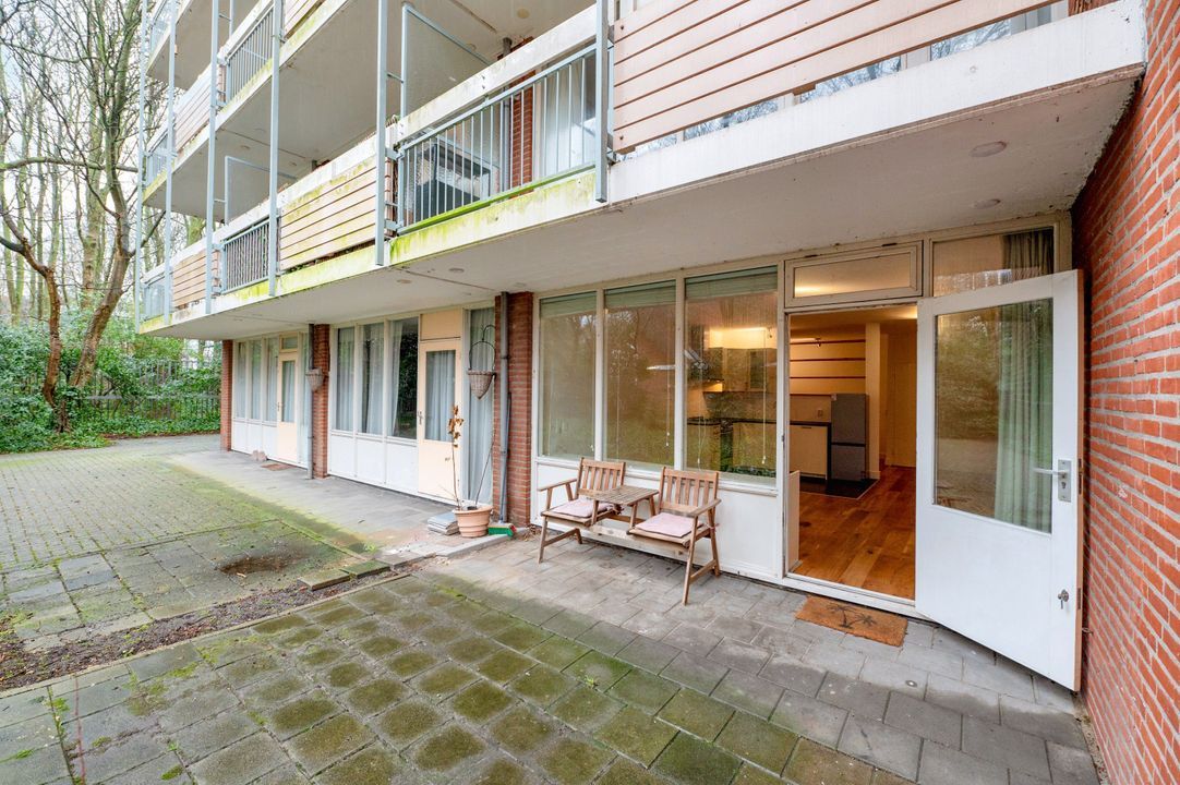 In een appartementencomplex gelegen , goed onderhouden charmant studio appartement op de begane grond met terras grenzend aan het achtergelegen "Bosje van Repelaer" .