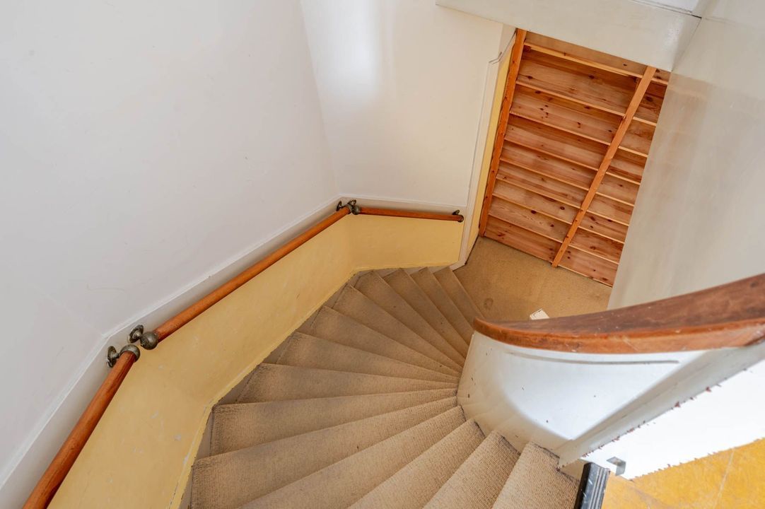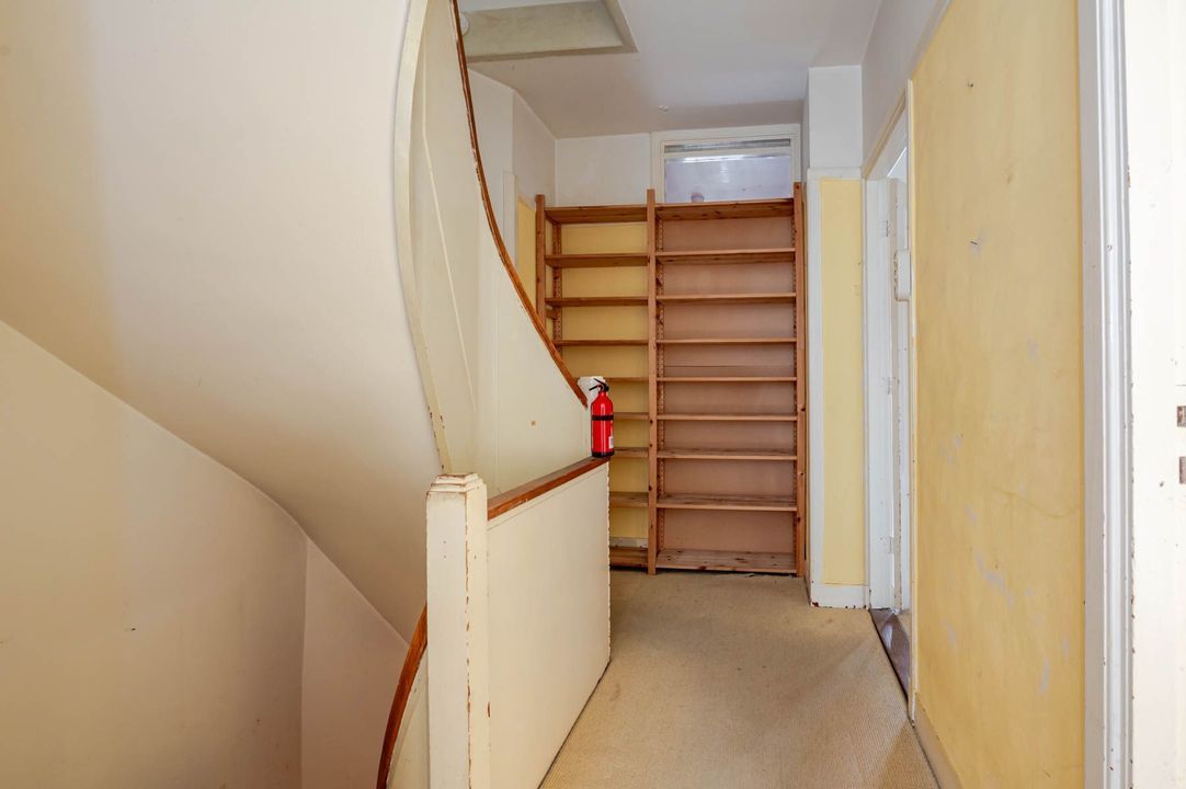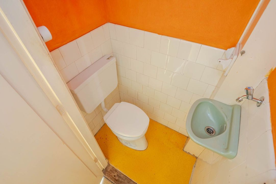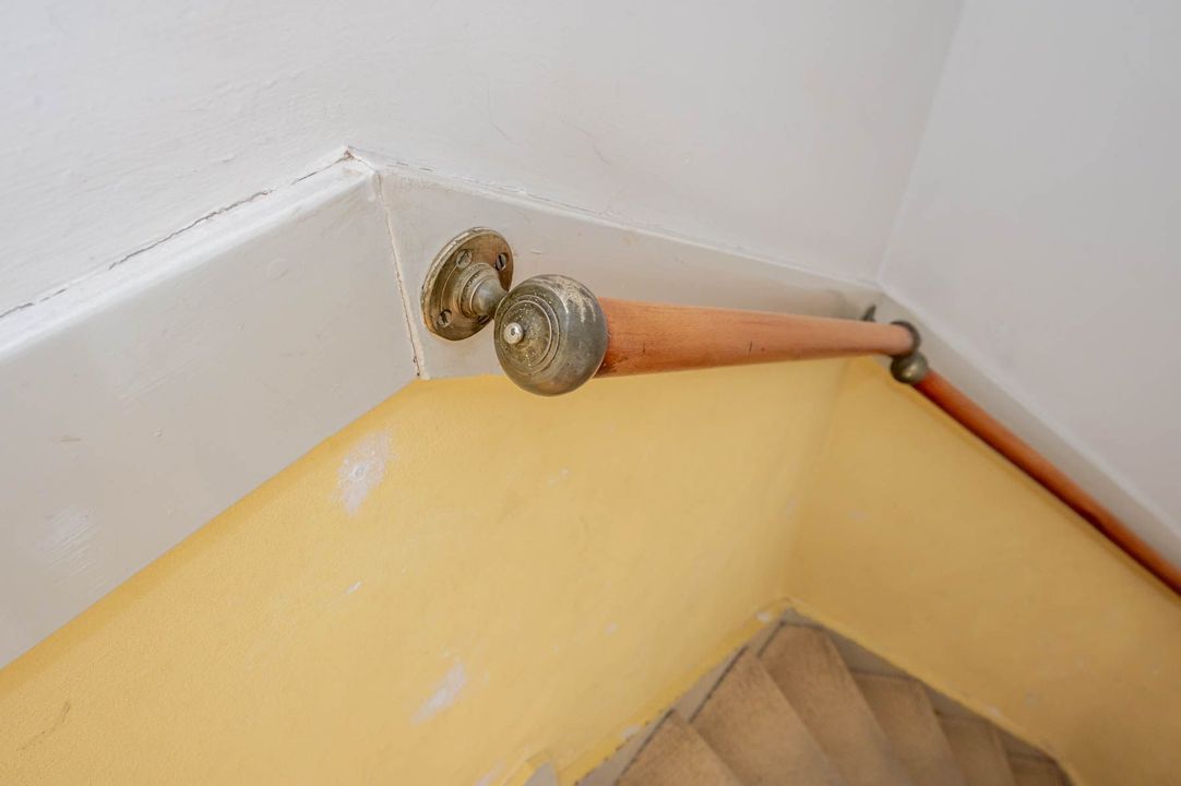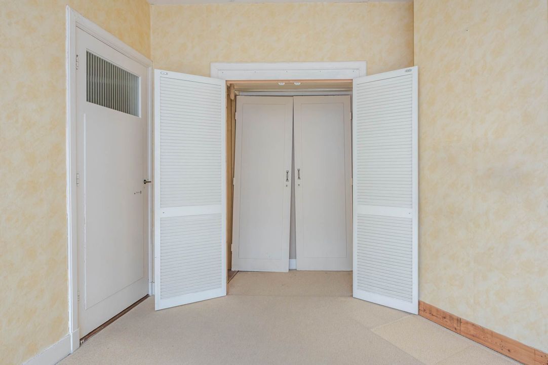 1st floor: landing with toilet, bathroom with bathtub, shower and washbasin, rear bedroom with double doors to balcony, front bedroom with balcony and passage to the front side room.