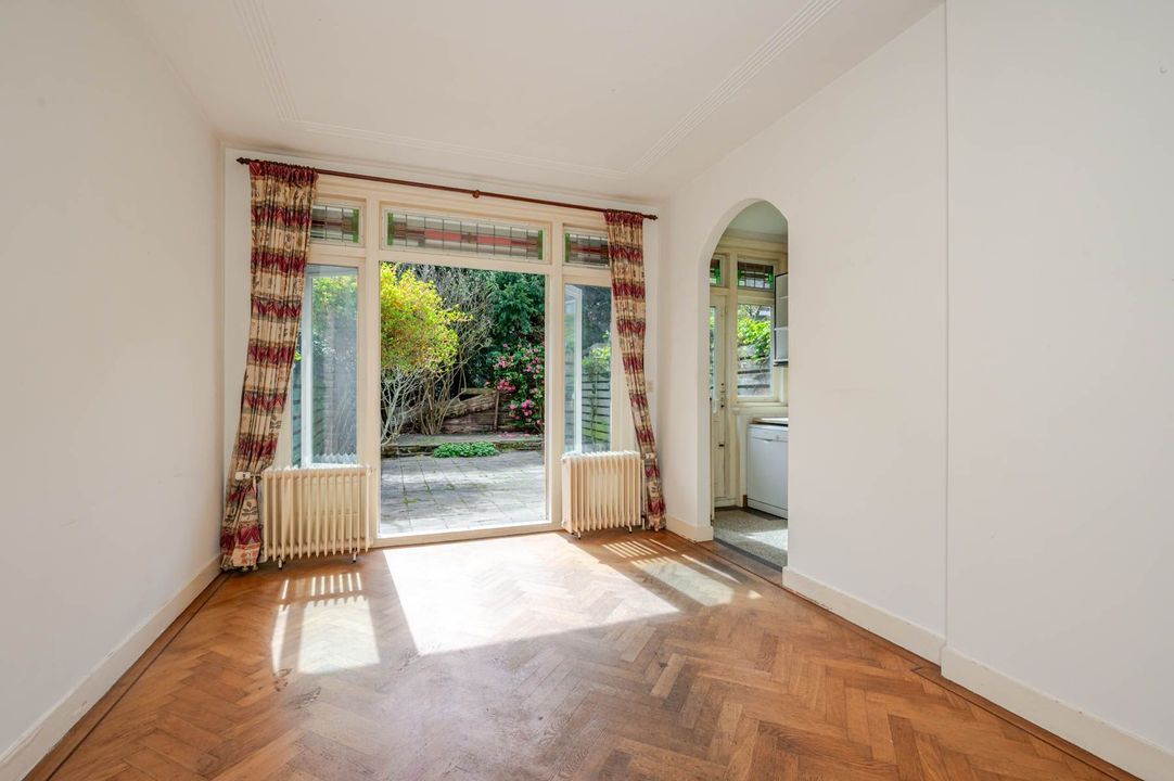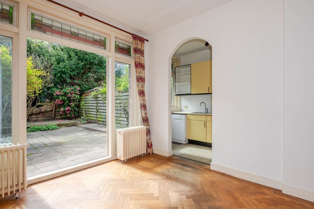 Charming 1930s terraced townhouse (approx. 144 m²) situated on a pleasant residential street in the Vruchtenbuurt, featuring a south-facing front and back garden.