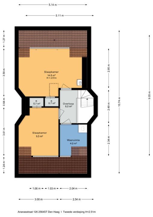 2e/kapverdieping: overloop, voorkamer met dakkapel, voorzijkamer met aansluiting wasmachine/droger, achterkamer volle breedte met dakkapel, opstelling CV (Remeha Avanta 2009) en luik naar vliering/bergzolder.