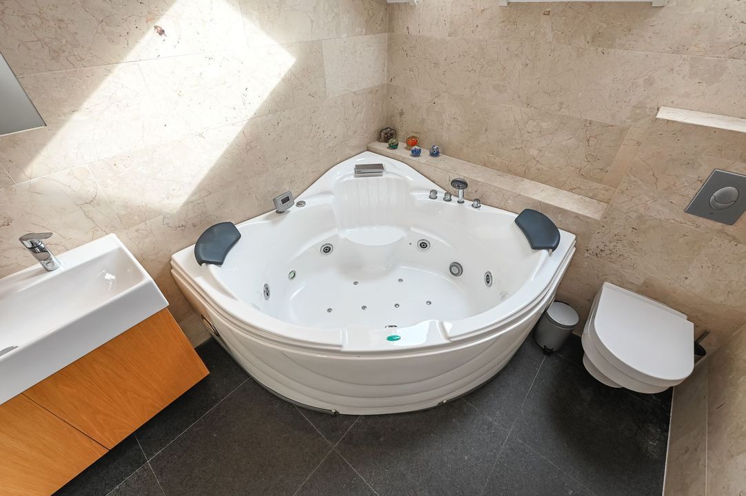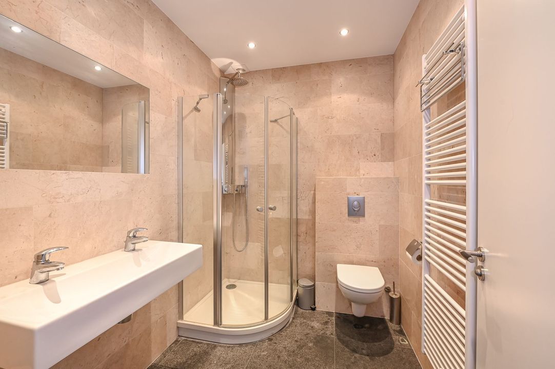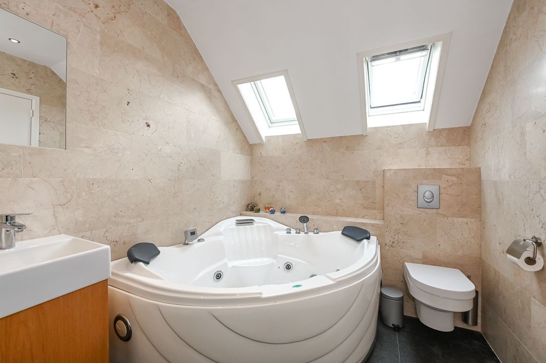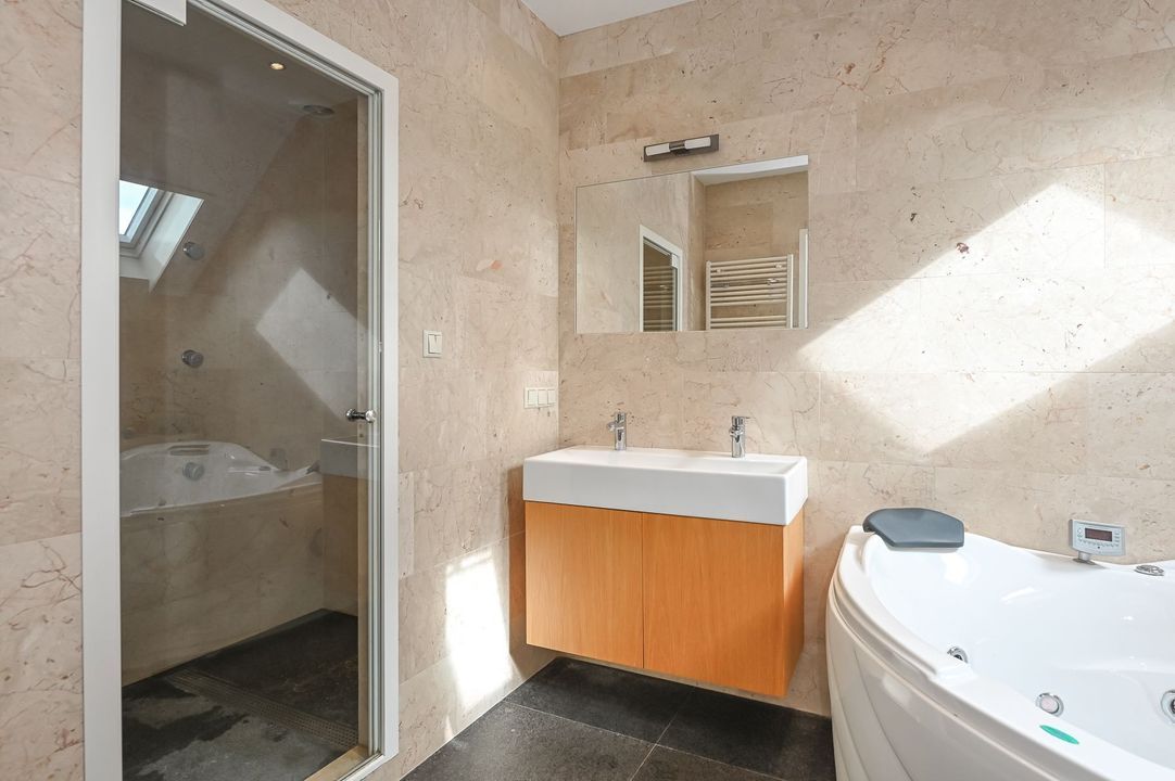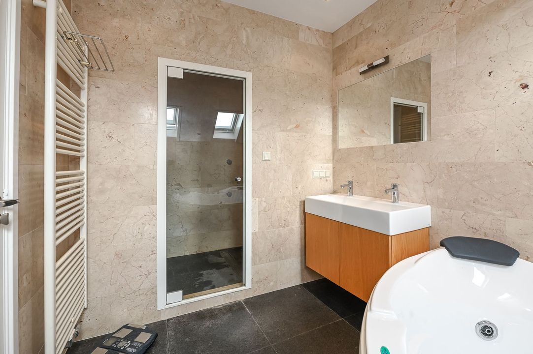 2e verdieping: overloop met achterkamer/inloopkast, achterslaapkamer met dakkapel, badkamer met dubbele wastafel, wc en douche. Voorslaapkamer met dakkapel, en doorgang naar 2e badkamer v.v. hoekbad/whirlpool, dubbele wastafel, wc en stoomdouche/-cabine.