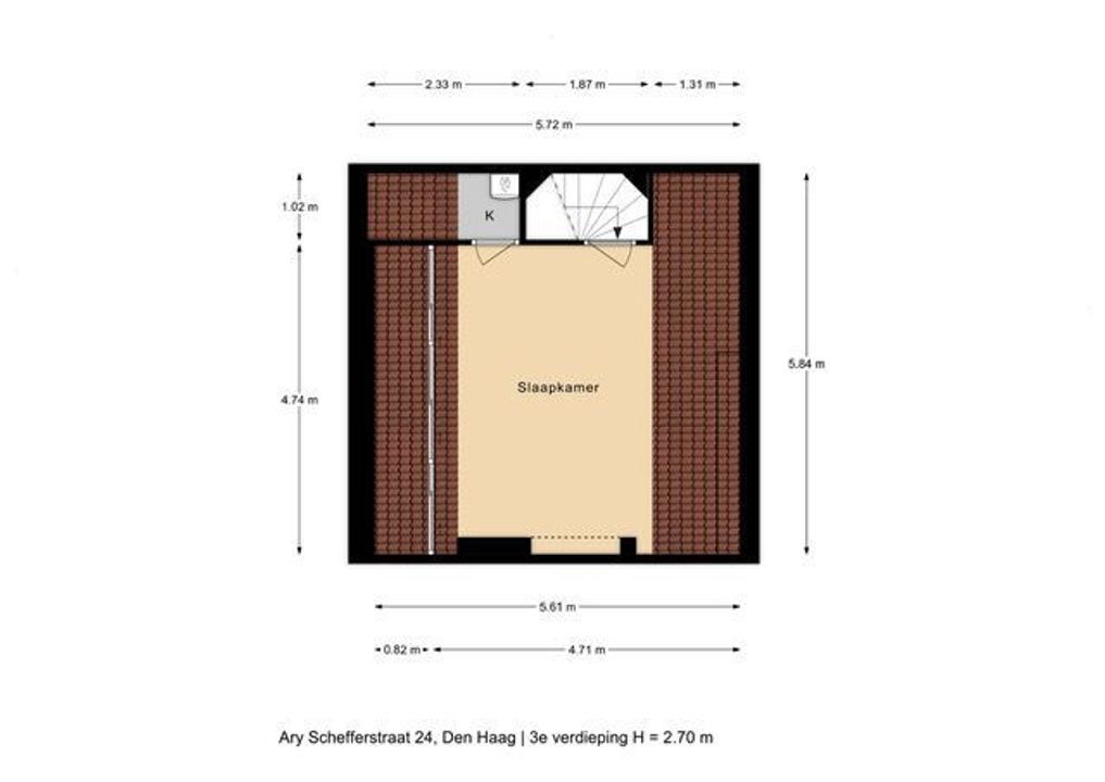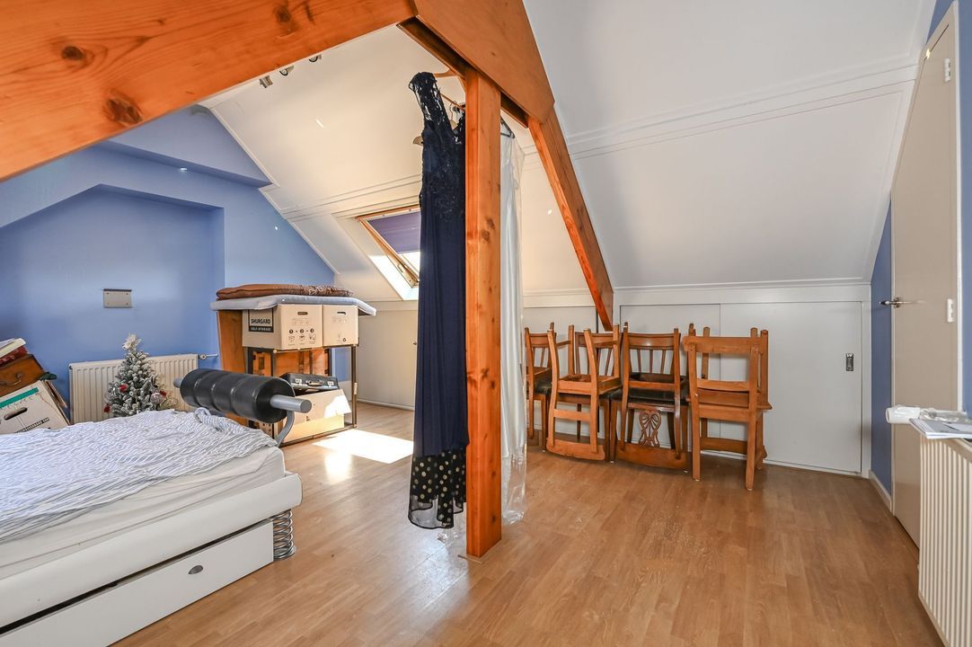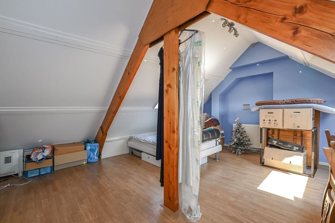3e/zolder verdieping: grote open ruimte met 2 Velux dakramen, veel bergruimte en kast met opstelling CV-installatie.