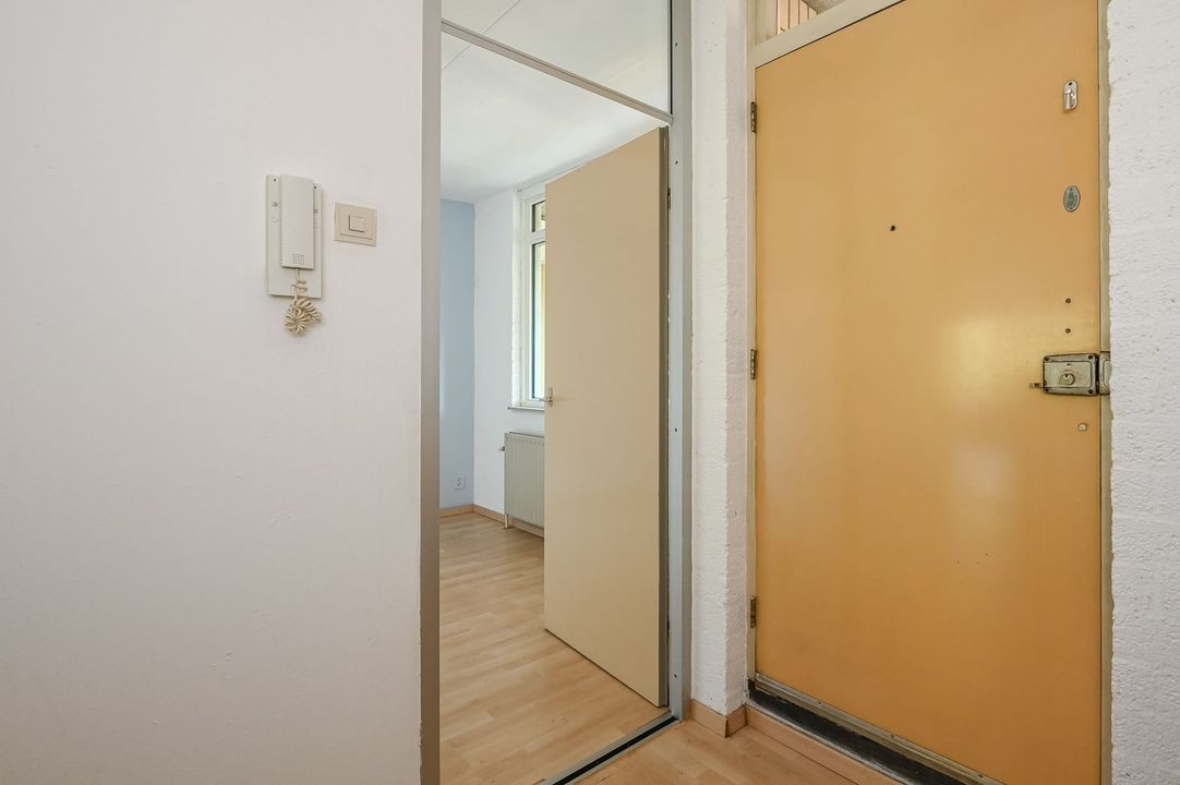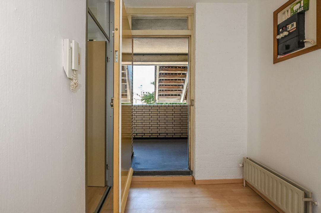 Algemene entree, lift naar 3e verdieping, galerij/trap naar app. entree: hal, meterkast, garderobe, ruime woon-/eetkamer met open keuken in L-vorm, deur naar zonnig balkon(Zuid-West) met groen uitzicht, ruime slaapkamer, nette badkamer met ligbad, wastafel en wc. Privé berging(3.12x2.58) en alg. fietsenberging in onderbouw