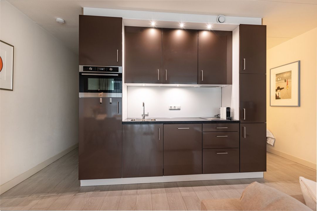 Op fantastische locatie om de hoek van de boulevard op de 4e etage treft u dit charmante, zeer goed onderhouden studio-appartement met lift, balkon alsmede een kelderberging in de onderbouw.