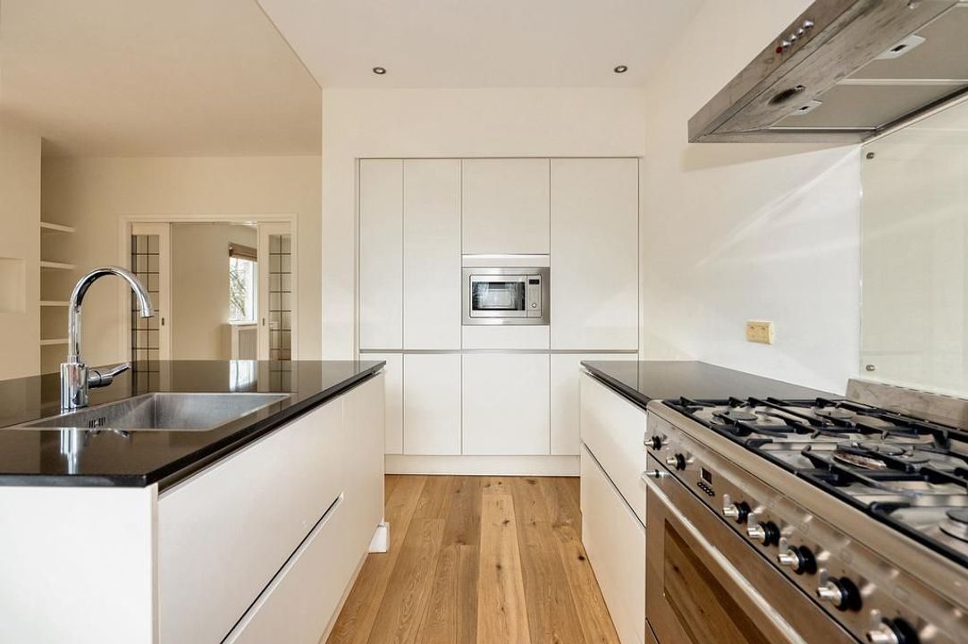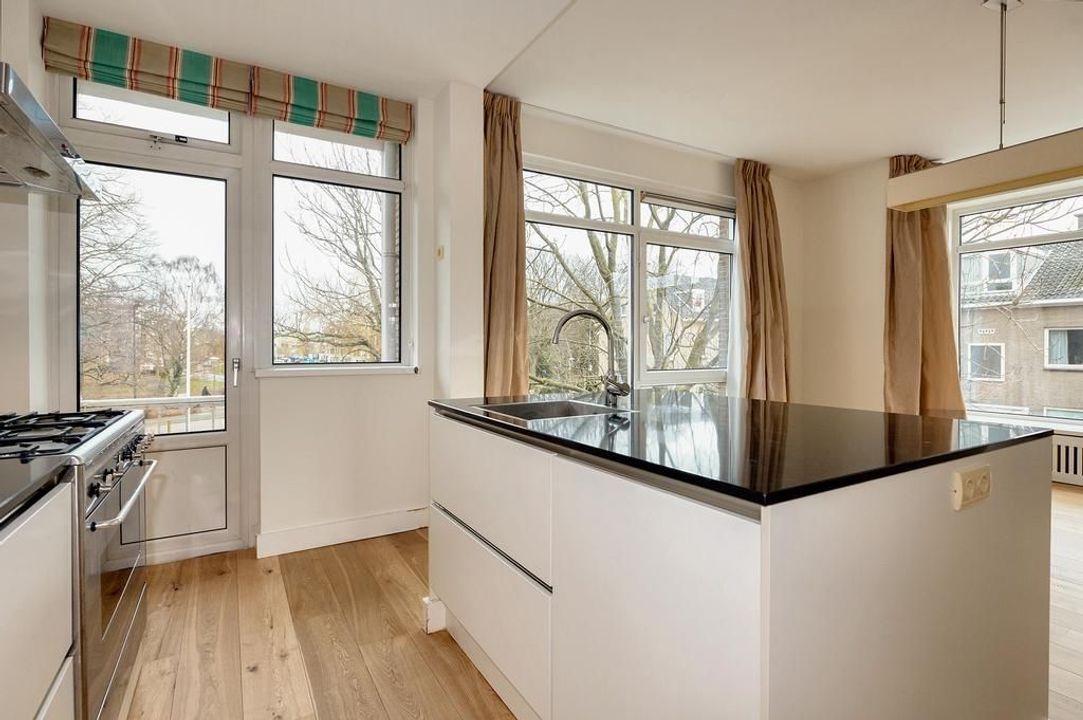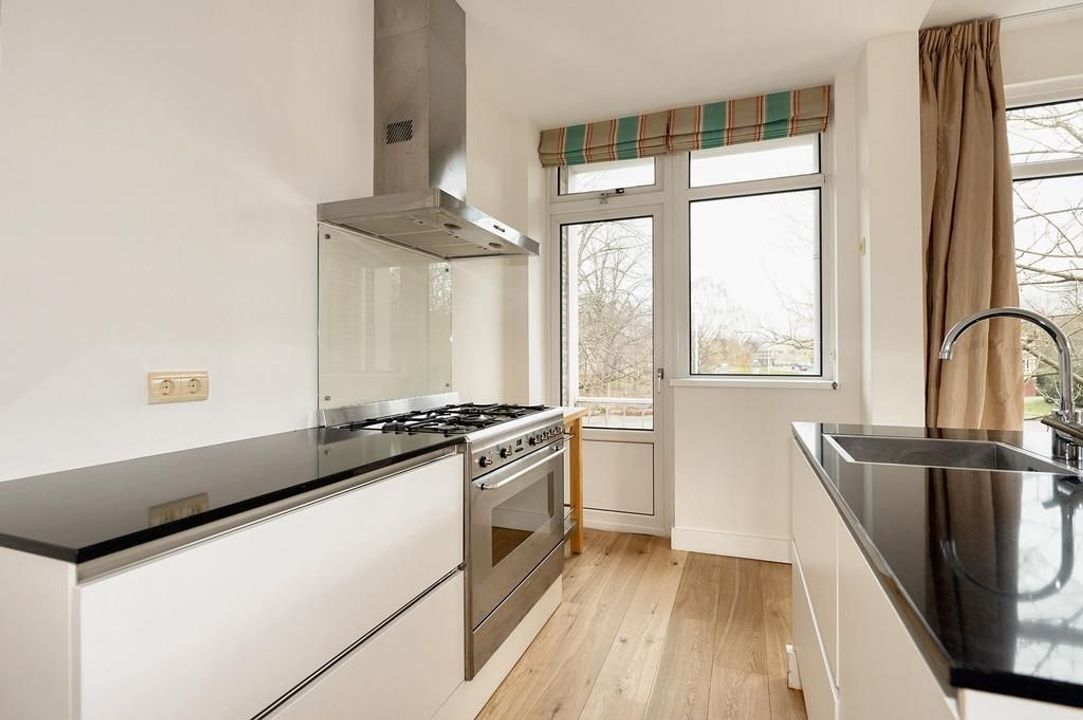 This apartment has a very spacious living/dining room and open kitchen with lots of light thanks to the large windows. It also has 3 bedrooms, a modern bathroom, a modern bright open kitchen with a front balcony. The open kitchen is equipped with a 5-burner gas stove with oven, extractor hood, microwave, dishwasher and fridge-freezer combination. There is a large south-facing balcony spanning the full width of the apartment at the back. The apartment is located in a quiet residential area in a beautiful, green area at the entrance of the Clingendael & Oosterbeek park and the Haagse Bos, but also a stone's throw from the arterial roads and the city center.