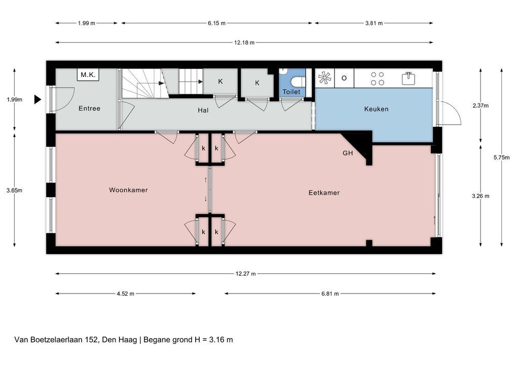 Zie de plattegronden voor de maatvoering.