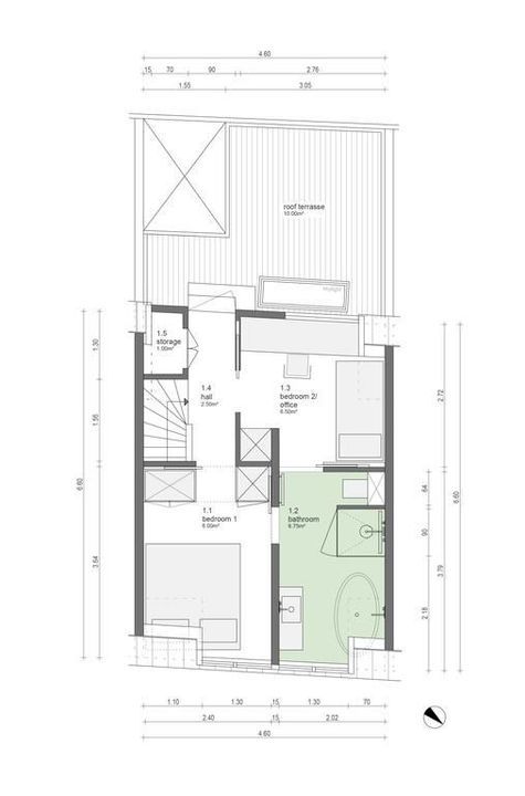 Layout: entrance, hall, living-dining room with luxurious open kitchen with built in appliances, laundry room, toilet and access to the courtyard. Stairs to the first floor: two bedrooms, luxury bathroom with bath and separate shower, access to the terrace.