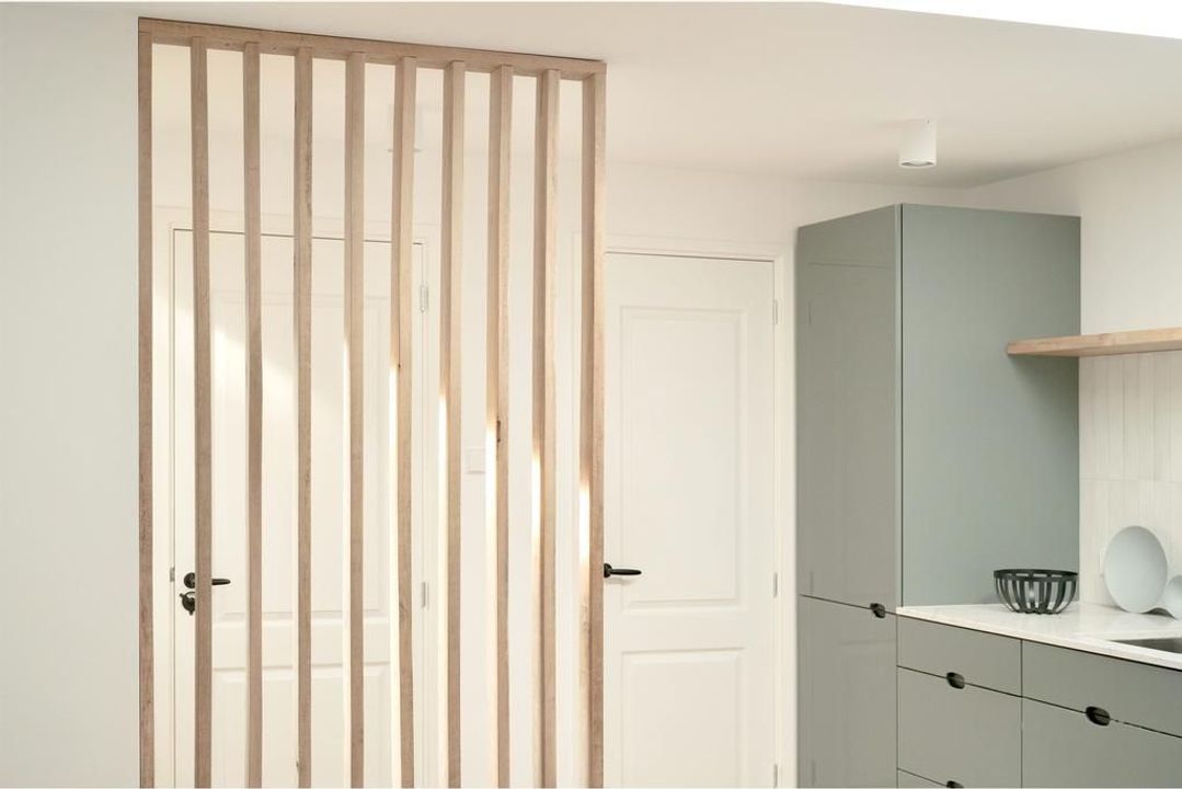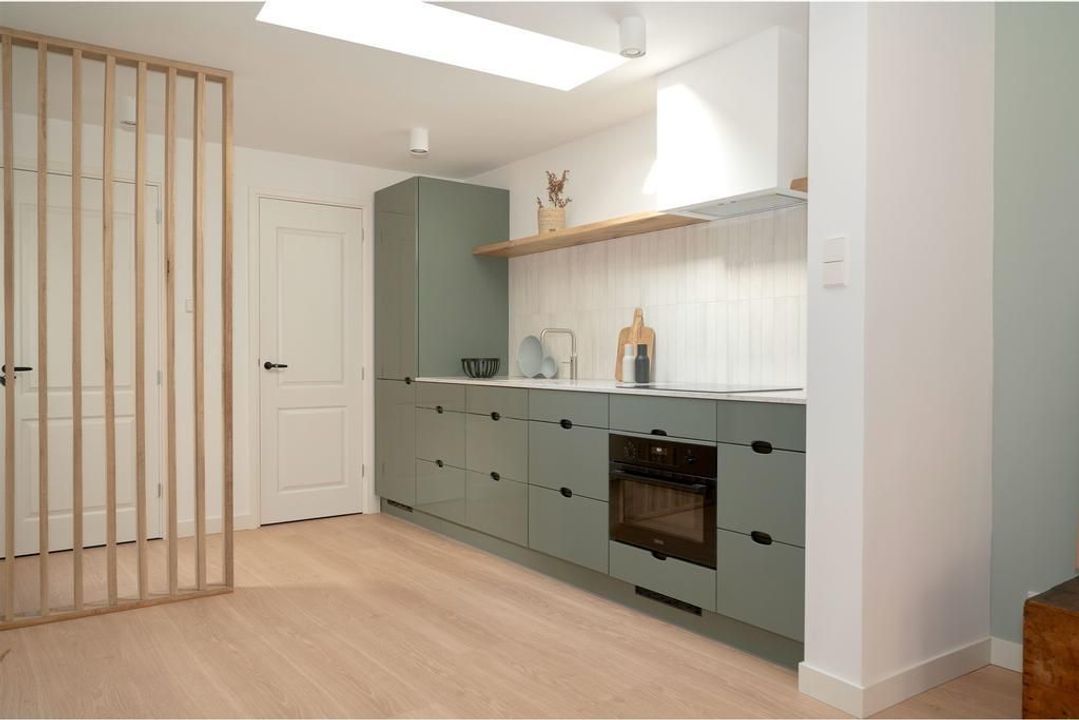 Indeling: entree, hal, woon- eetkamer met luxe open keuken met Quooker en diverse inbouwapparatuur, bijkeuken met opstelplaats wasmachine/droger, toilet en toegang tot de binnenplaats. Trap naar de eerste verdieping: overloop, twee slaapkamers, complete luxe badkamer met bad en aparte douche, toegang tot het terras.