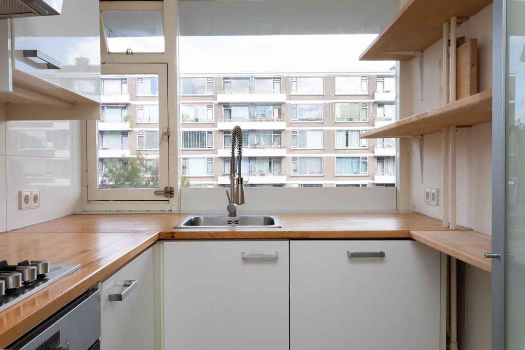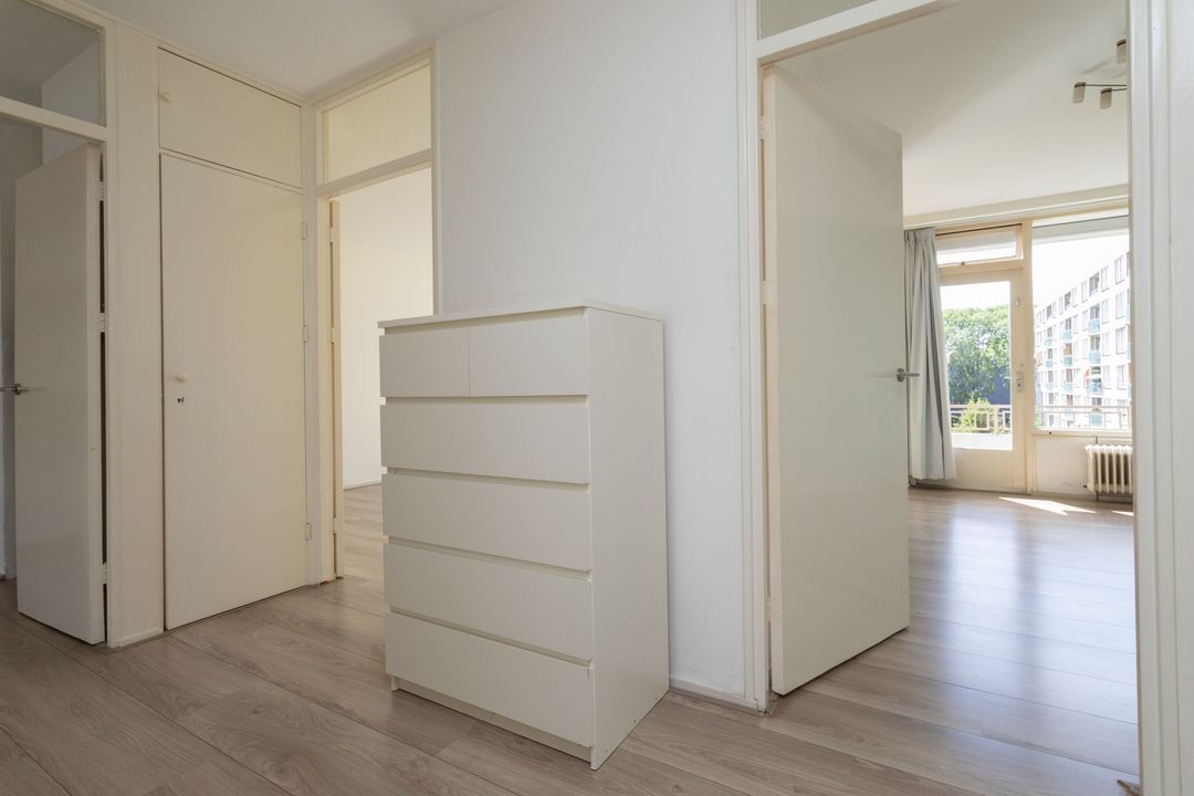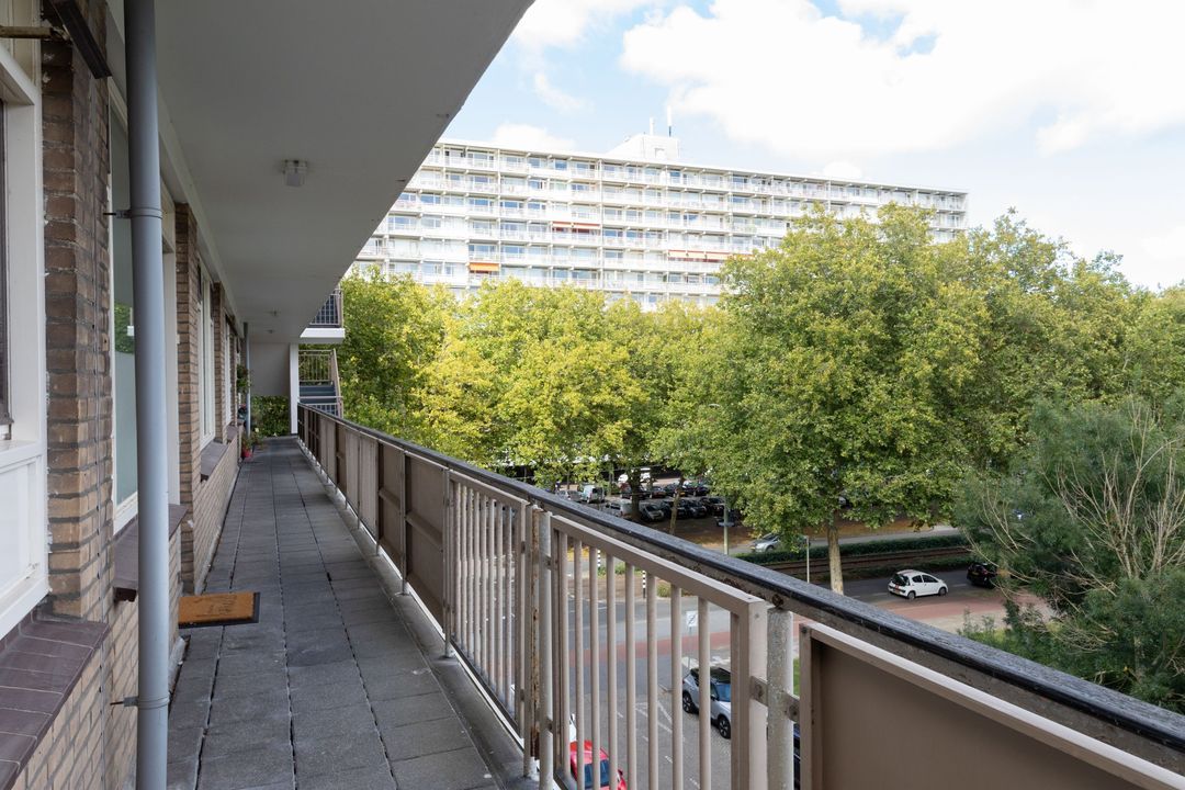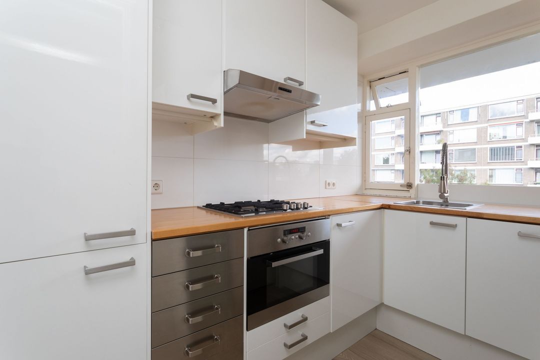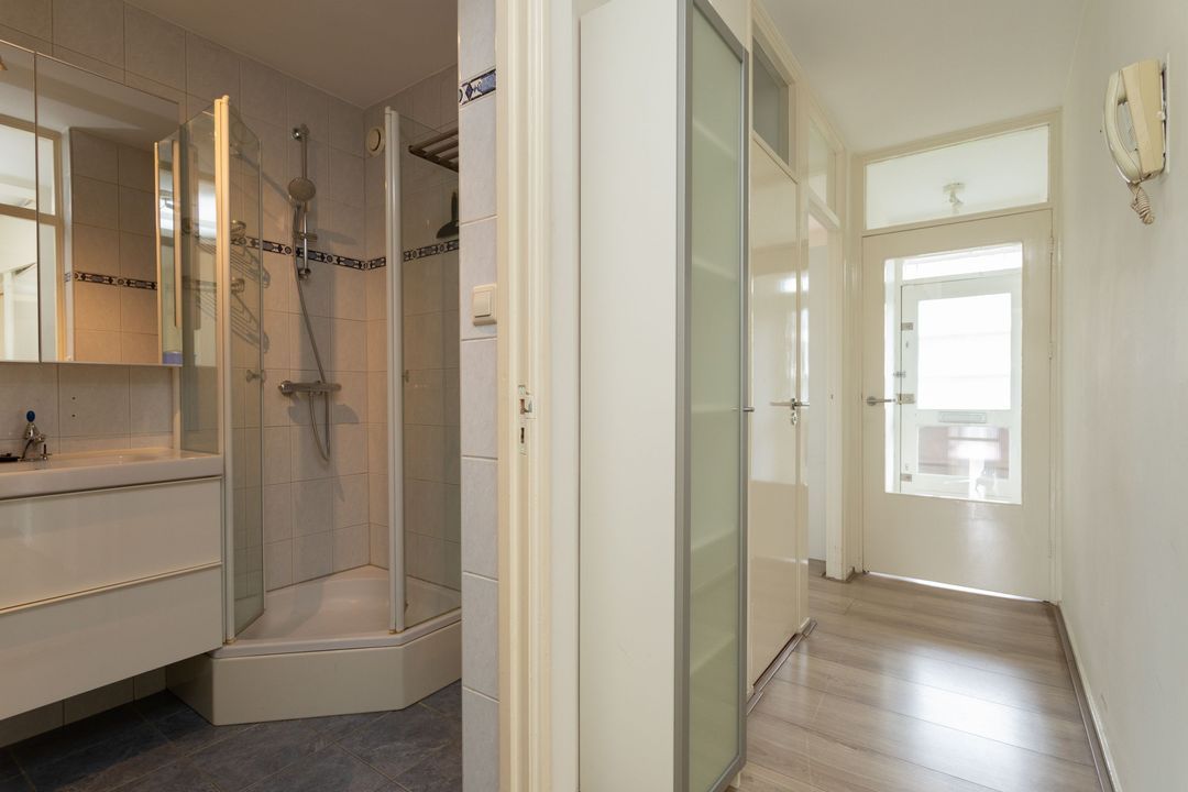 De woon- annex eetkamer is gelegen aan de achterzijde is ruim en licht ; de eetkamer geeft toegang tot het zonnige balkon. Aan de galerij zijde bevindt zich de moderne keuken voorzien van diverse inbouwapparatuur te weten een 4-pits gaskookplaat,rvs-wasemkap, vaatwasmacine, koelkast en diepvriezer. Moderne badkamer met douche , vaste wastafel + meubel alsmede een aansluiting voor de wasmachine. Grote slaapkamer met vaste kast, in de tweede slaapkamer staat een fraaie spiegelkastenwand.