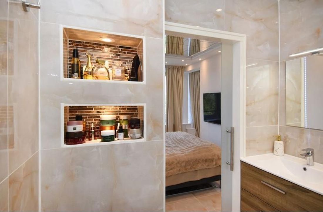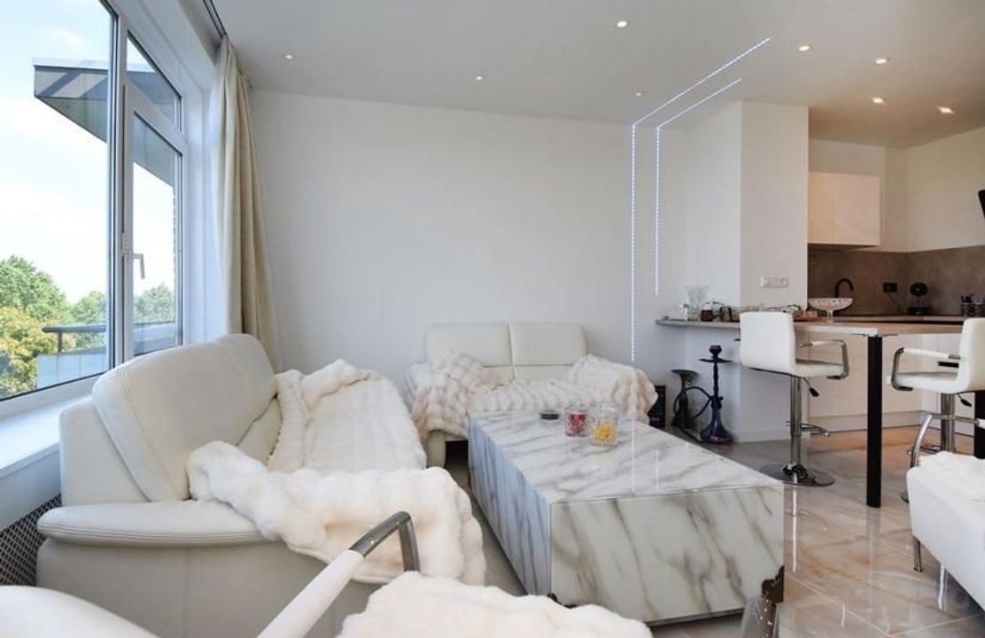 Het appartement is o.a. voorzien van een mooi entree, nieuwe en luxueze keuken in L-vorm voorzien van diverse inbouwapparatuur, mooie living, separate slaapkamer en en zeer luxueze badkamer (marmeren vloeren en wanden).